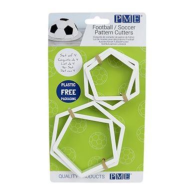 Los cortadores pentagonales son aptos para fondant, mazapán, pasta de goma y cualquier otra masa (incluso lonchas de queso sandwich! El conjunto es excelente para hacer tartas de fútbol!